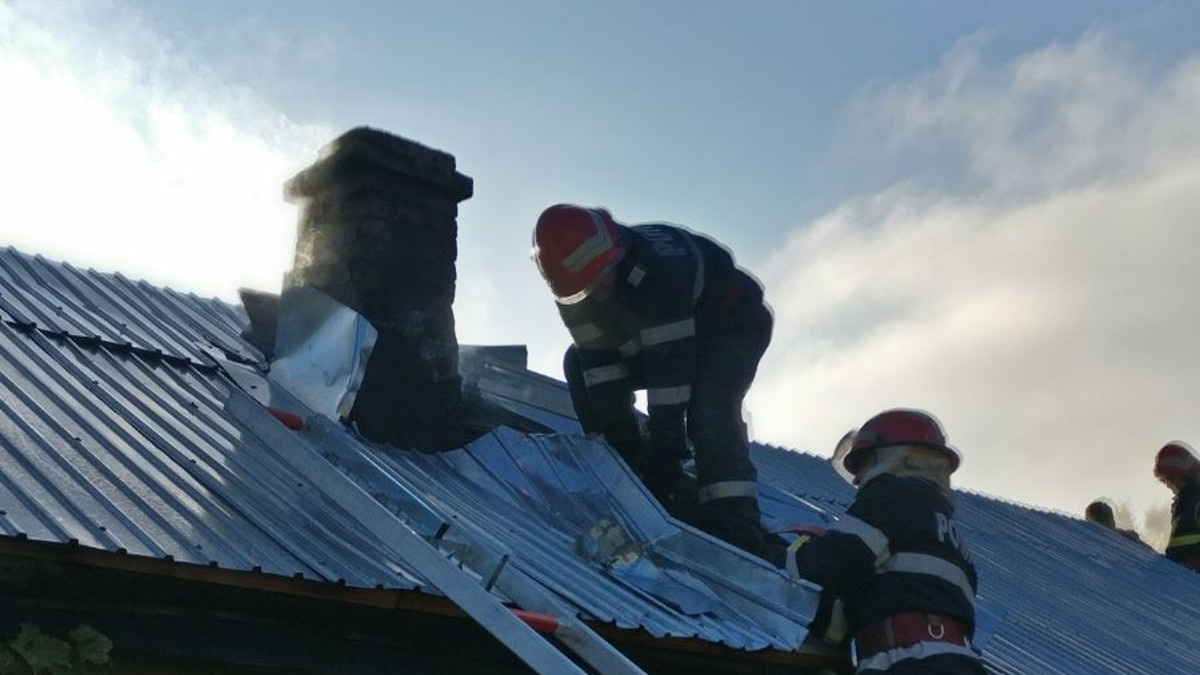 Incendiu casa (1) Pompierii au intervenit la stingerea unui incendiu izbucnit la o casă. FOTO ISU Delta Tulcea