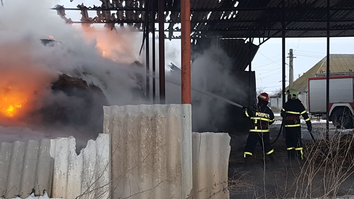 Un puternic incendiu a cuprins câteva sute de baloți de paie. FOTO ISU Delta Tulcea