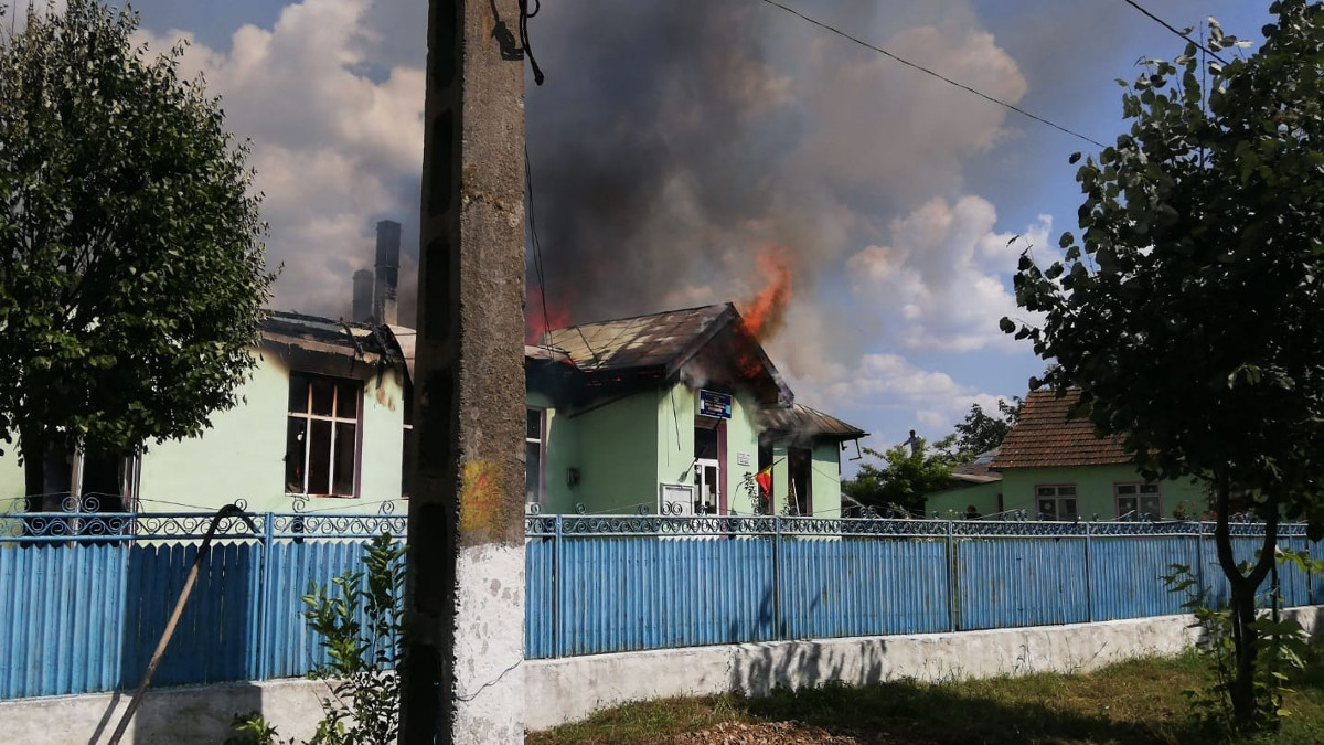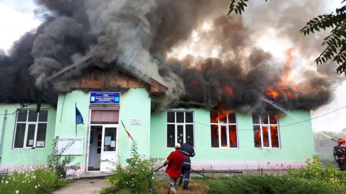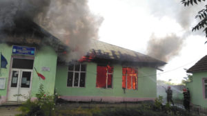 Pompierii au stins focul ,comunitatea s-a implicat cu mic cu mare de a salvat documentele si ce mai era in biroul Directorului,mare lucru nu.
