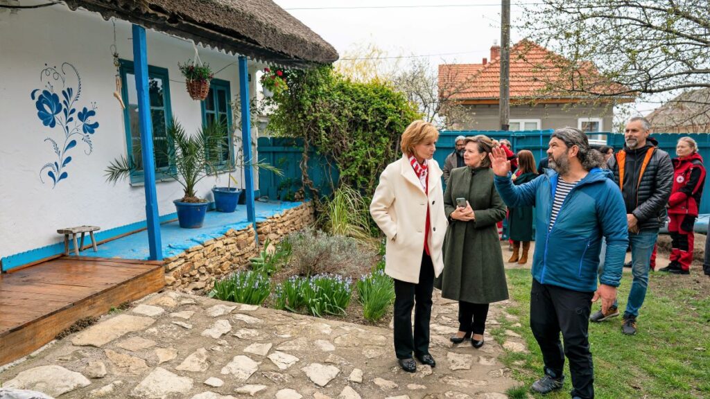 Majestatea Sa Margareta și Altețea sa Regală Sofia au ales să ia o masă tradițională, alături de primarul localității, în casa familiei Sterea – o locuință construită recent, dar după modelul caselor tradiționale și folosind integral materiale naturale, de la piatra dobrogeană pentru fundație, până la chirpici și stuf.
