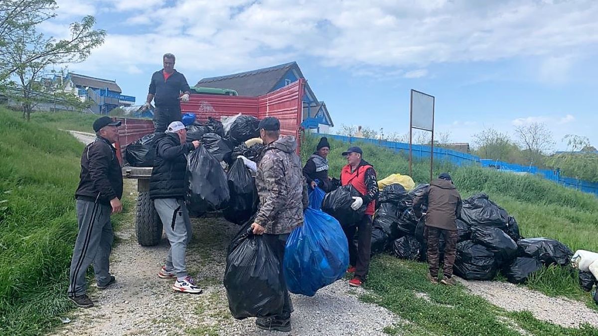Zeci de saci cu deșeuri, colectați de pe plaja sălbatică de la Perișor, Tulcea. FOTO comunitatea din Dunavățu de Jos