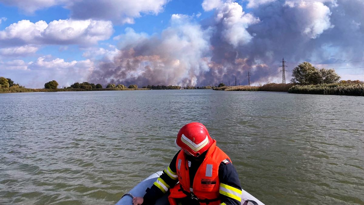 Incendiu de vegetație în apropiere de orașul Sulina. FOTO: ISU Tulcea