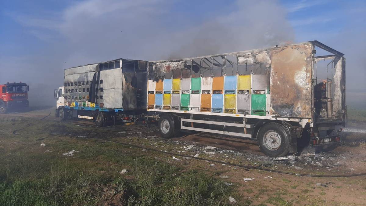 Incendiu la un camion apicol la Enisala. FOTO ISU Tulcea