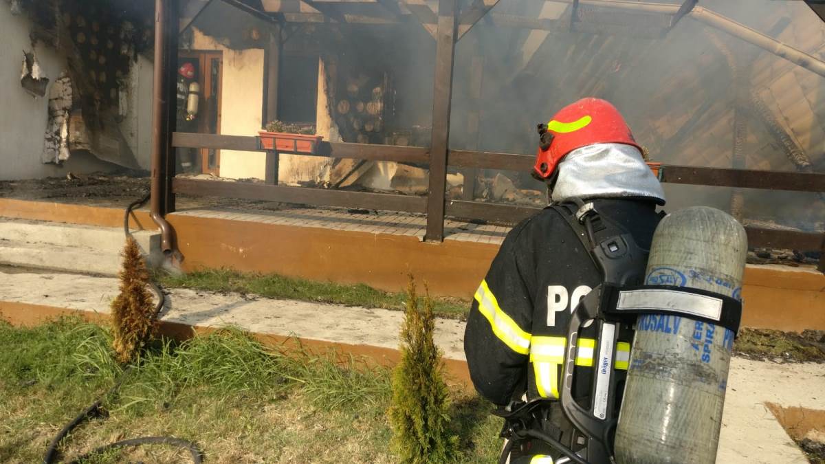 În acest moment incendiul este localizat, se lucrează pentru lichidare. Casa a fost protejată, nu s-a extins.