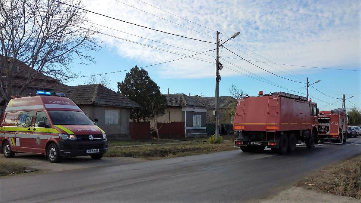 Incendiu provocat de aprinderea unei acumulări de gaze, într-o locuință din Carcaliu. FOTO ISU Tulcea