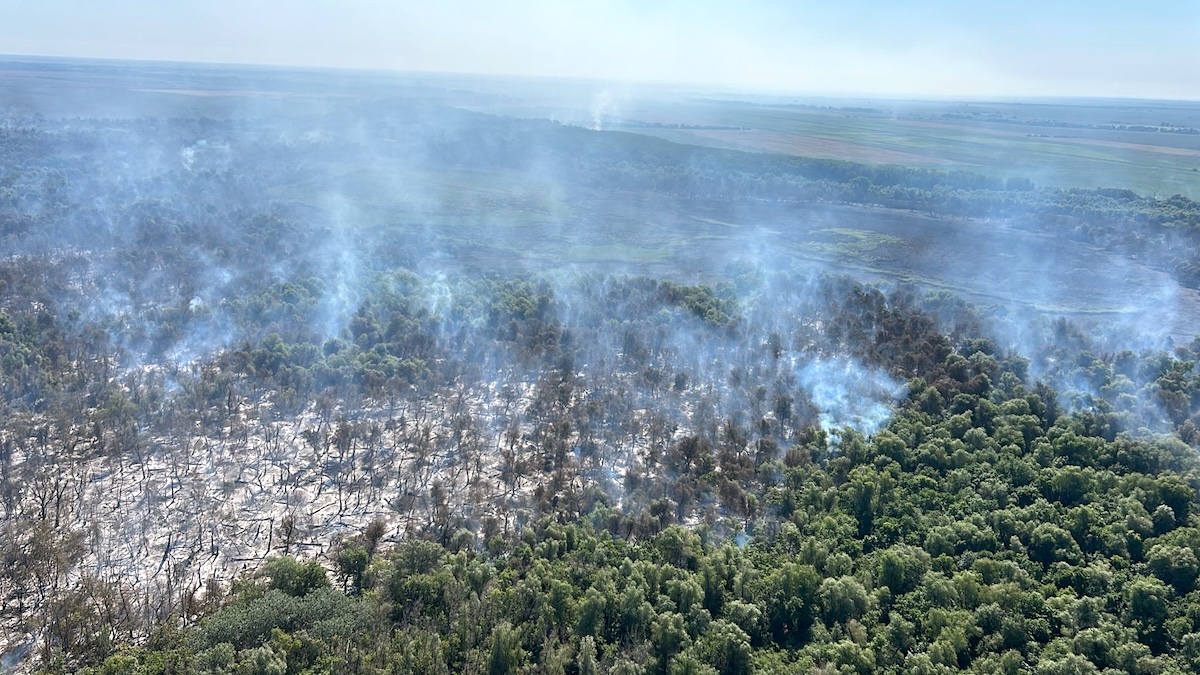 Incendiu de pădure și vegetație la Chilia Veche. FOTO ISU Delta Tulcea