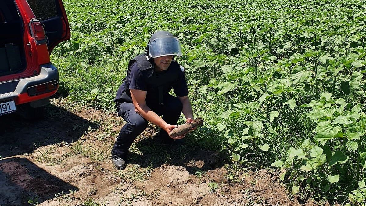 Proiectil de aruncător, găsit pe un câmp de lângă Cataloi. FOTO ISU Tulcea