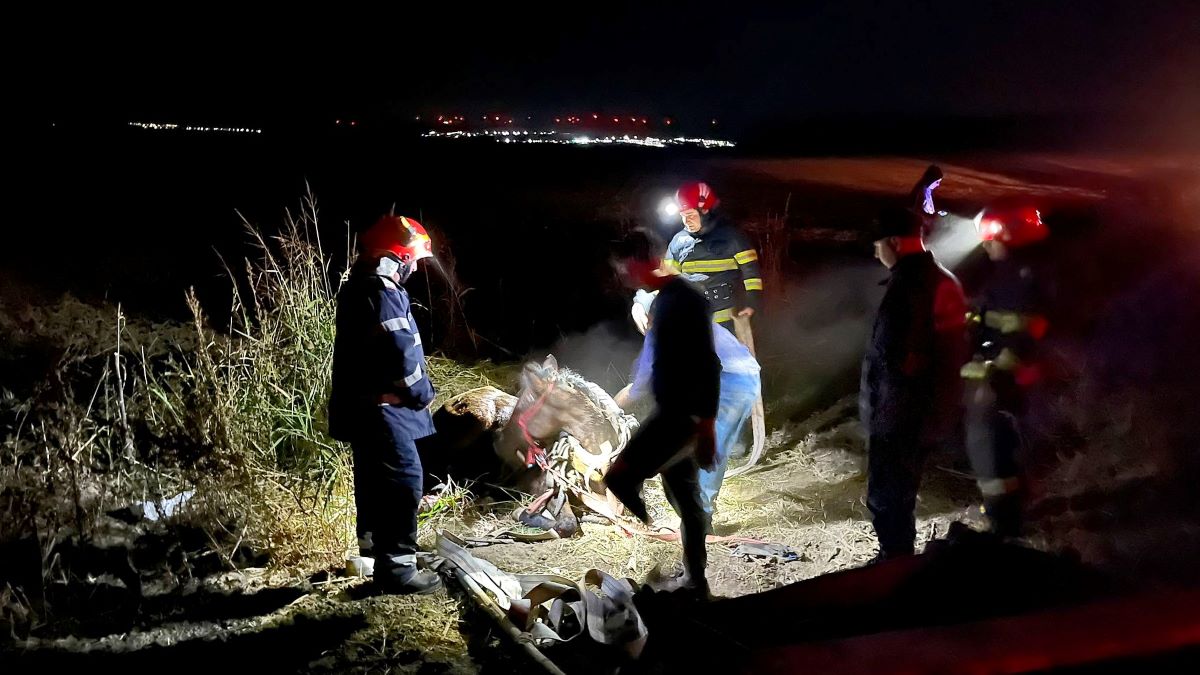 Intervenție a pompierilor pentru salvarea unui cal căzut într-o groapă. FOTO: ISU Tulcea