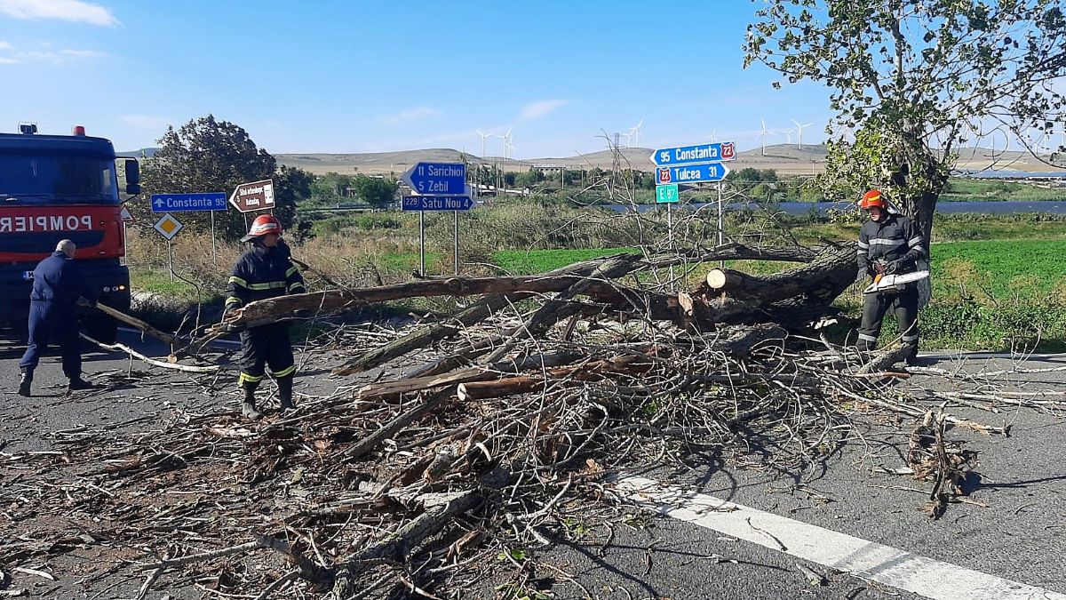 Intervenții ale pompierilor sub atenționarea de Cod galben de vânt. FOTO ISU Tulcea