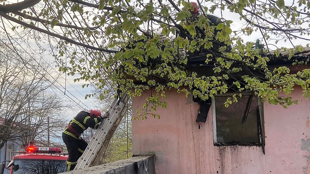 Locuință cuprinsă de flăcări, în municipiul Tulcea, de coșul de fum. FOTO: ISU Tulcea