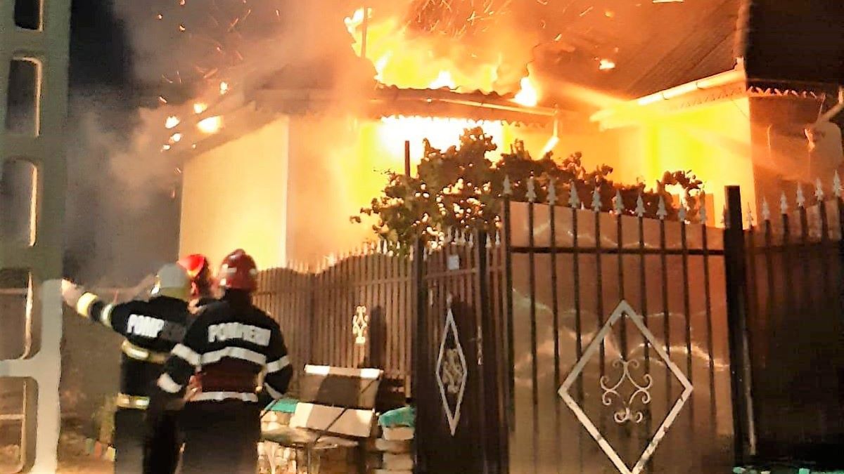 Locuință din localitatea Slava Rusă cuprinsă de flăcări în urma unui scurtcircuit electric. FOTO ISU Tulcea