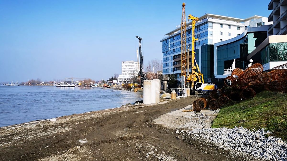 Lucrările de modernizare a portului și falezei Dunării, executate în proporție de 25 la sută. FOTO CJ Tulcea