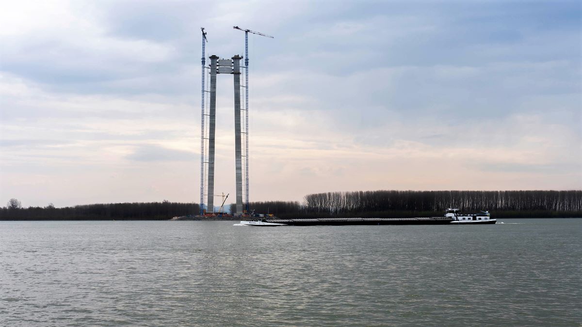 Lucrările la Podul suspendat de la Brăila afectează parțial navigația pe Dunăre. FOTO CNAIR