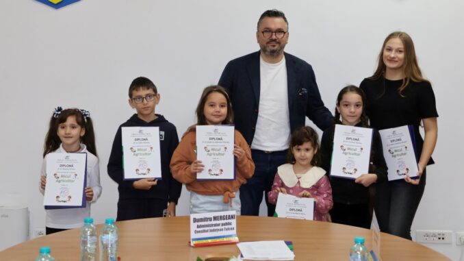 Administratorul public al județului Tulcea, Dumitru Mergeani, a participat, marți, 21 octombrie 2025, la sala „Dobrogea“ a Consiliului Județean Tulcea, la festivitatea de premiere a celor mai talentați copii înscriși în concursul „Micul Agricultor“, ajuns la a cincea ediție.