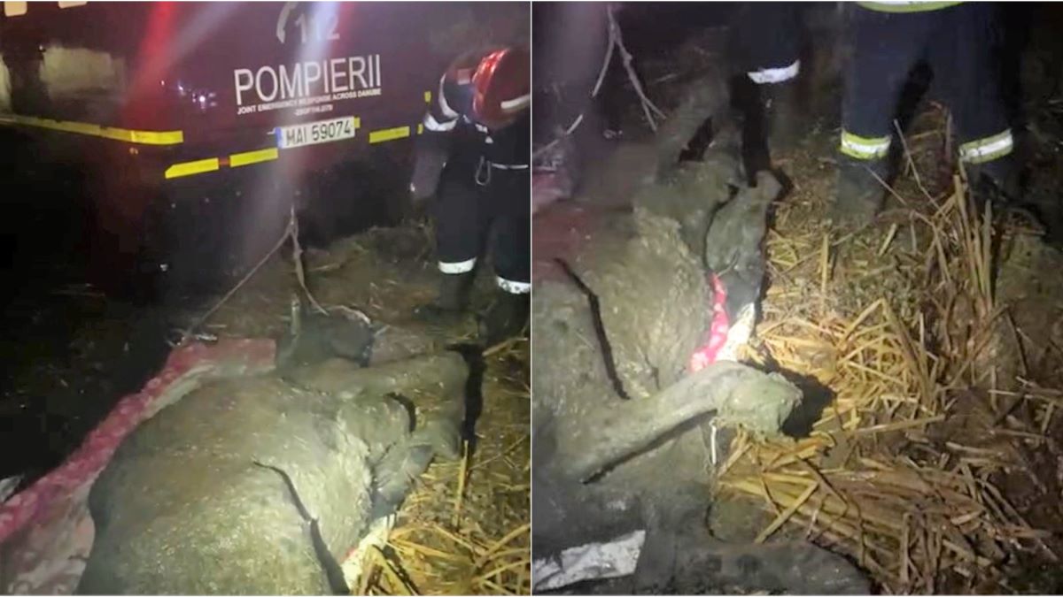 Misiune pentru salvarea unei bovine împotmolită într-o mlaștină. FOTO: ISU Tulcea