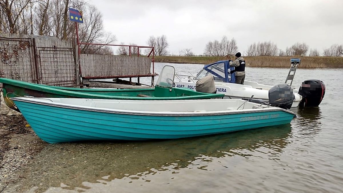 Motor de ambarcațiune, căutat de autoritățile din Suedia, găsit de polițiștii de frontieră în zona lacului Razelm. FOTO: Garda de Coastă