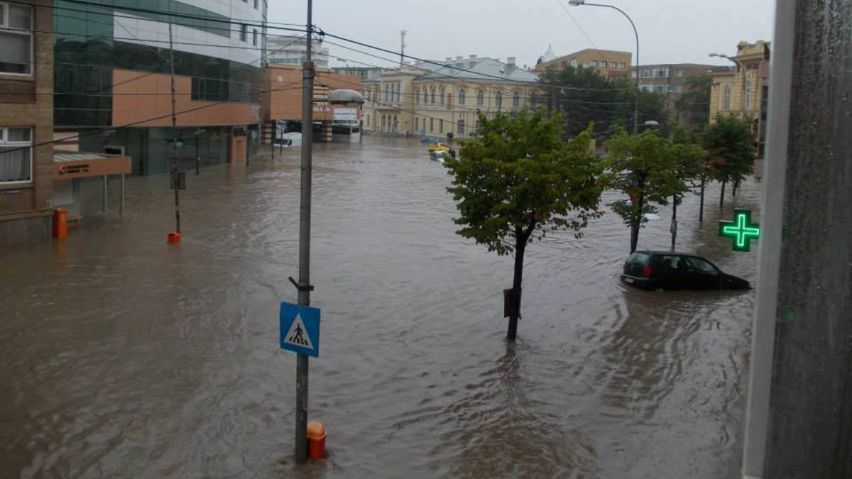 O imagine obișnuită din centrul municipiului Tulcea atunci când plouă