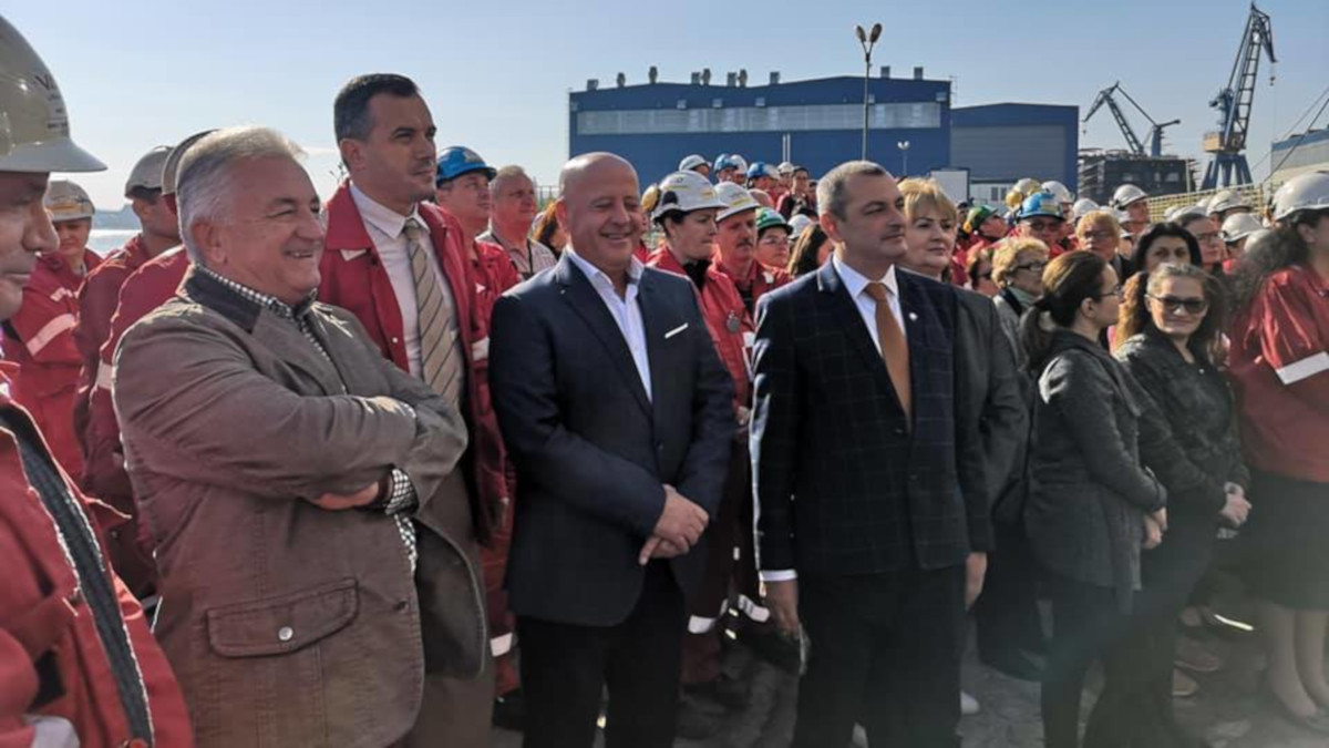lansare nava Autoritățile publice locale din Tulcea, au participat la lansarea la apă a ultimei nave construite pe șantierul Vard. FOTO CJ Tulcea