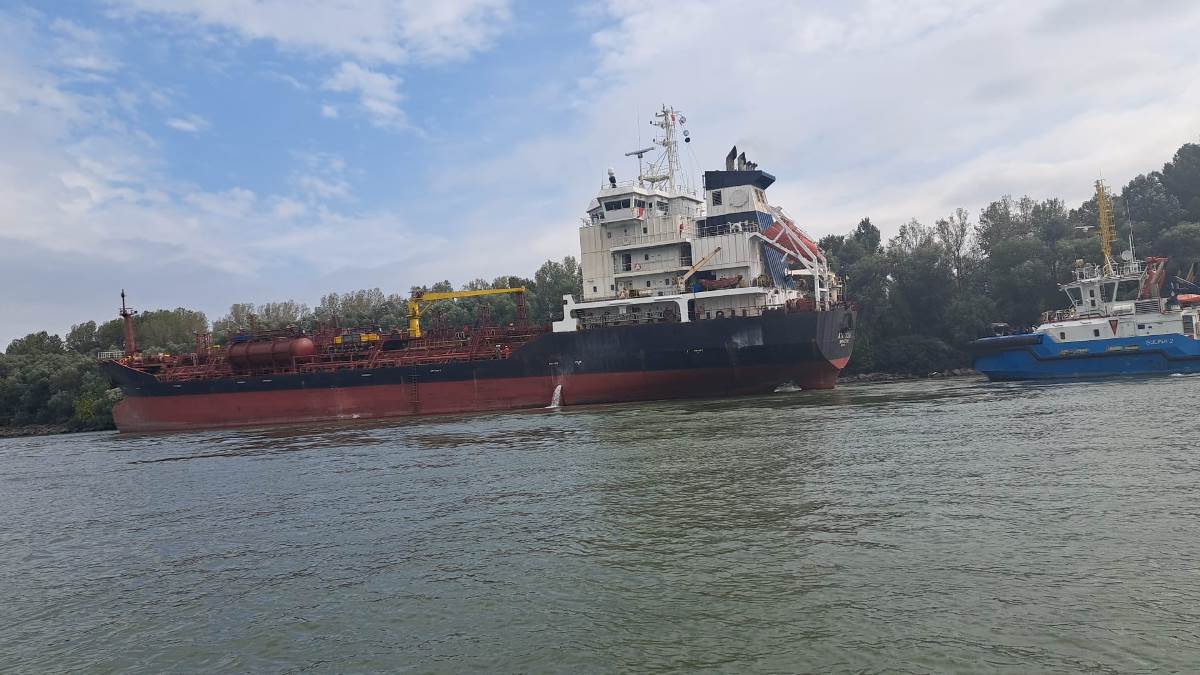 Navă eșuată pe Canalul Sulina. FOTO ANR