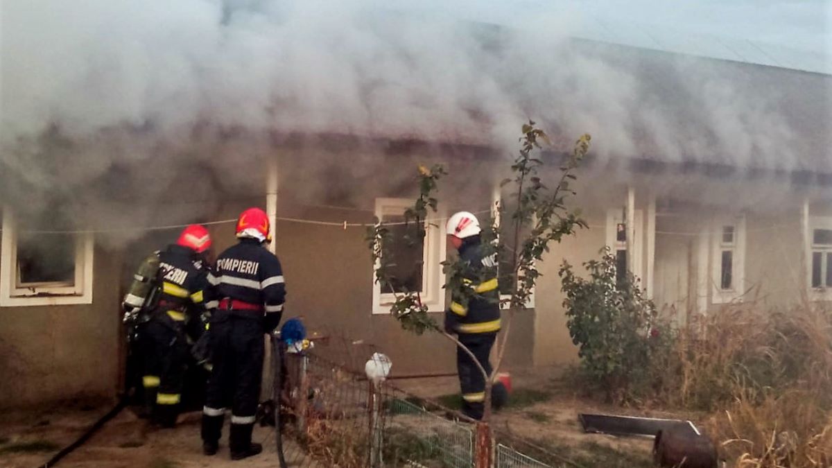 Incendiu locuință în localitatea Victoria din județul Tulcea. FOTO: ISU Tulcea