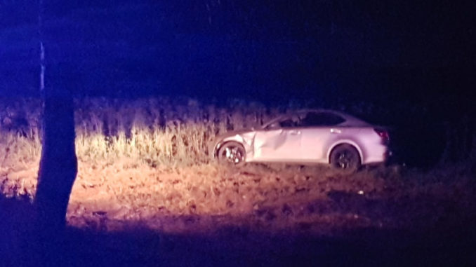 Mașina condusă de tânărul din Greci s-a răsturnat în afara părții carosabile. FOTO IPJ Tulcea