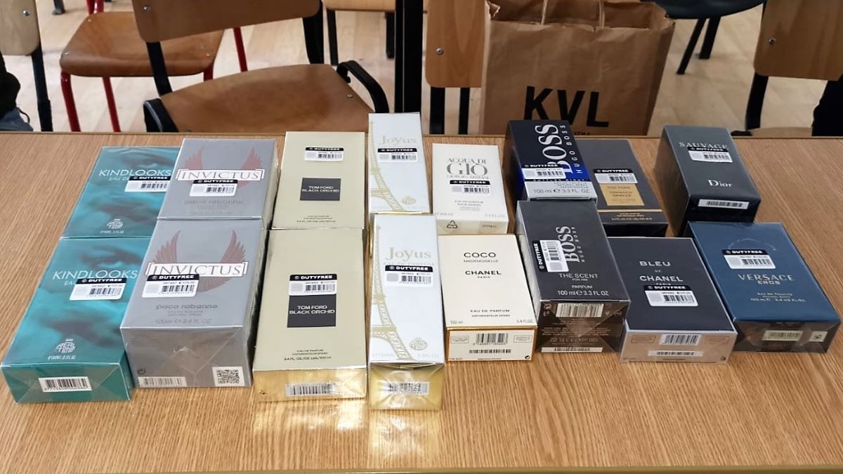 Parfumuri susceptibile a fi contrafăcute, confiscate de jandarmii tulceni. FOTO IJJ Tulcea parfumuri, contrafacute