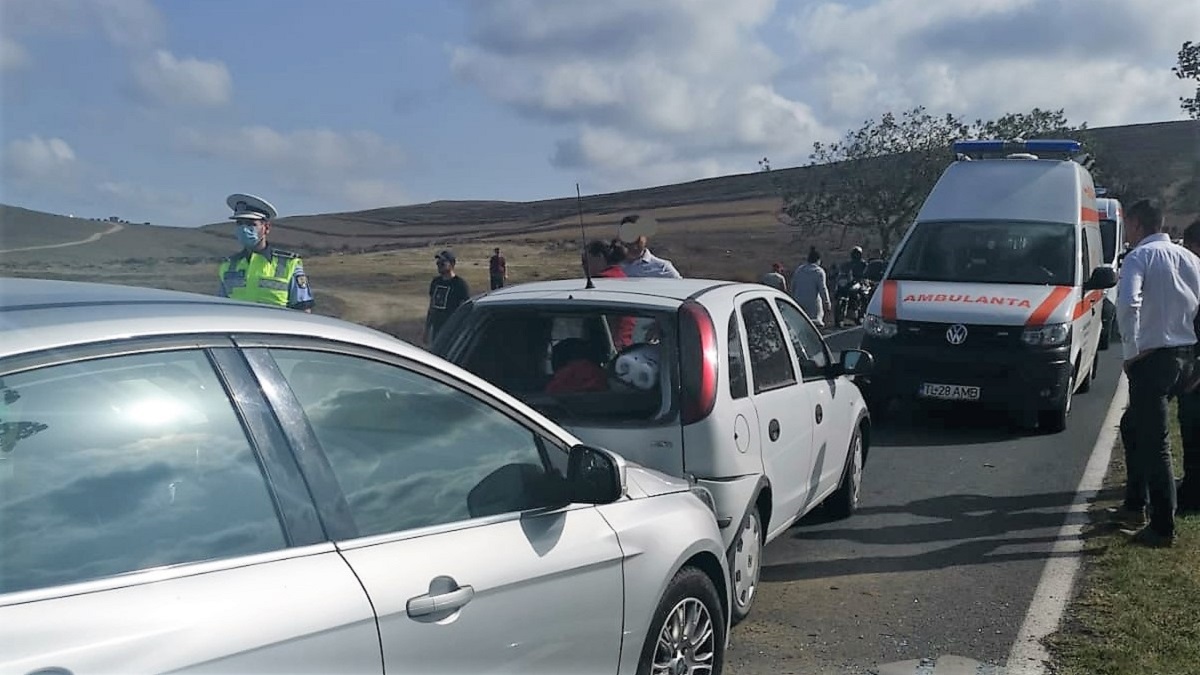 Patru persoane, rănite într-un accident în lanț petrecut în Enisala. FOTO IPJ Tulcea