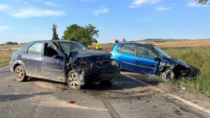 Accident rutier produs între trei autoturisme, în apropiere de Cataloi. FOTO ISU Tulcea