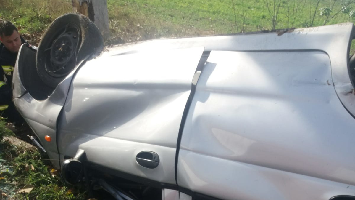 Șoferul a fost rănit după ce s-a răsturnat cu mașina. FOTO IPJ Tulcea