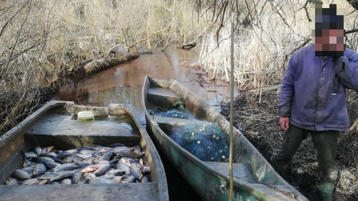 Pescarul cu barca plină de pește braconat. FOTO Poliția de Frontieră
