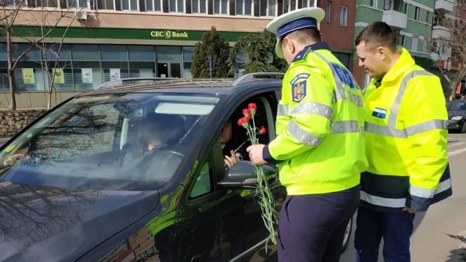 Astfel, polițiștii rutieri au oprit în trafic autoturismele conduse de femei, iar în loc de amenzi, au oferit femeilor conducători auto flori, mărțișoare şi recomandări preventive.