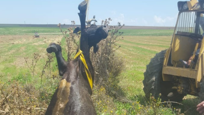 Vaca a fost scoasă în viață după aproximativ două ore. FOTO ISU Delta Tulcea