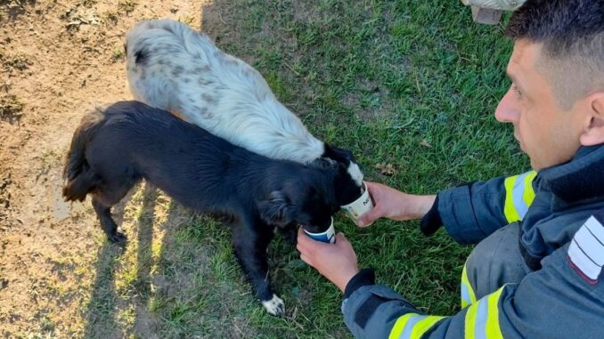Pompierii tulceni au salvat astăzi, două cățelușe care căzuseră într-un puț adânc de opt metri.