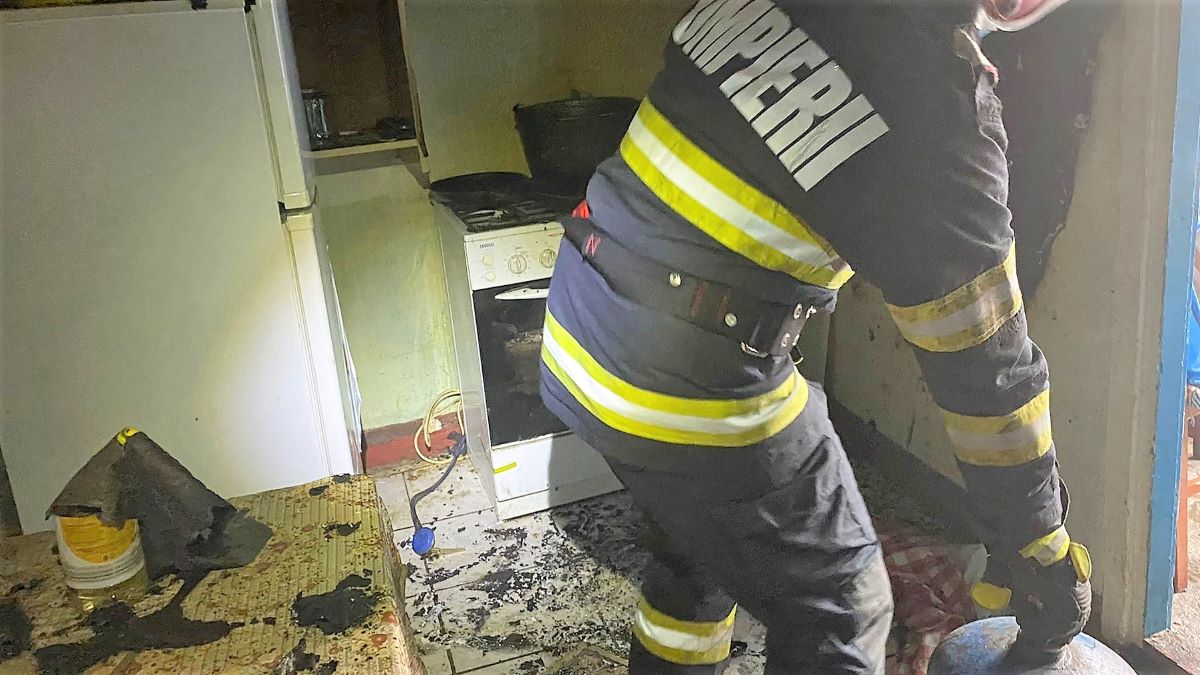 Pompierii tulceni, solicitați să intervină pentru o tigaie uitată pe foc. FOTO ISU Tulcea