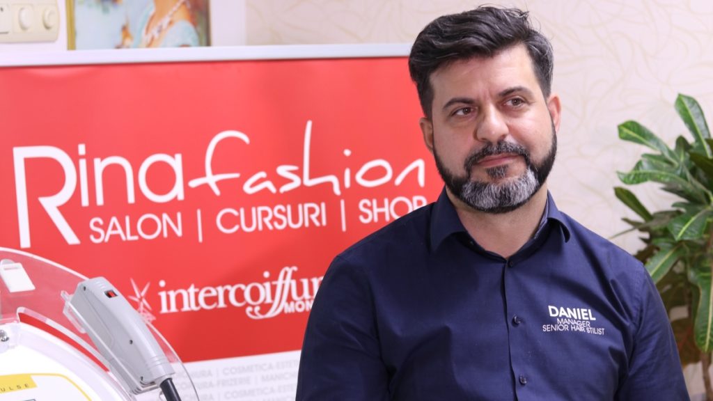 “Rina Fashion este primul salon de înfrumusețare privat din orașul nostru, înființat acum 27 de ani, undeva la parterul unui bloc, cu niște servicii mai simple, de frizerie, coafură și cosmetică. Acest brand a fost înființat de doamna Viorina Iancu, eu l-am preluat pe parcurs, am fost salariat în cadrul acestui brand foarte mulți ani, mi-am depășit această condiție” își începe povestea Daniel Albuleț, hairstylist și manager Rina Fashion Tulcea.