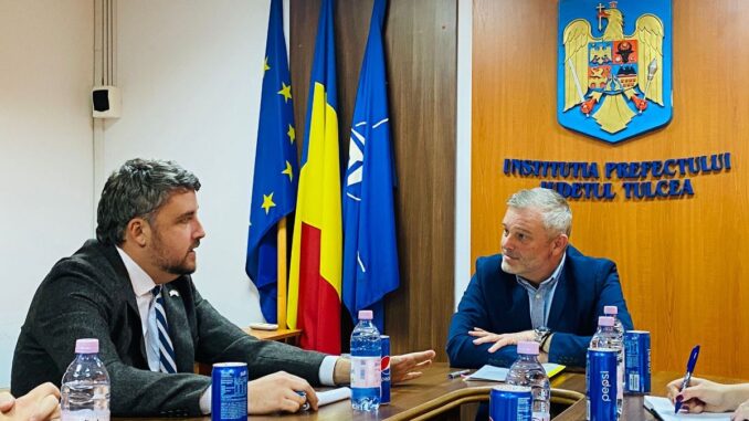 Prefectul Alexandru Dan Munteanu s-a întâlnit cu un consilier în cadrul Comandamentului pentru Europa și Africa al SUA. FOTO Prefectura Tulcea