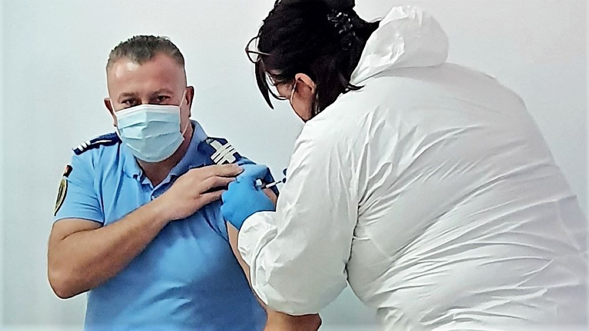 Gest de responsabilitate civică făcut de șeful IJJ Tulcea, colonel Ion Bordei. FOTO IJJ Tulcea vaccinare