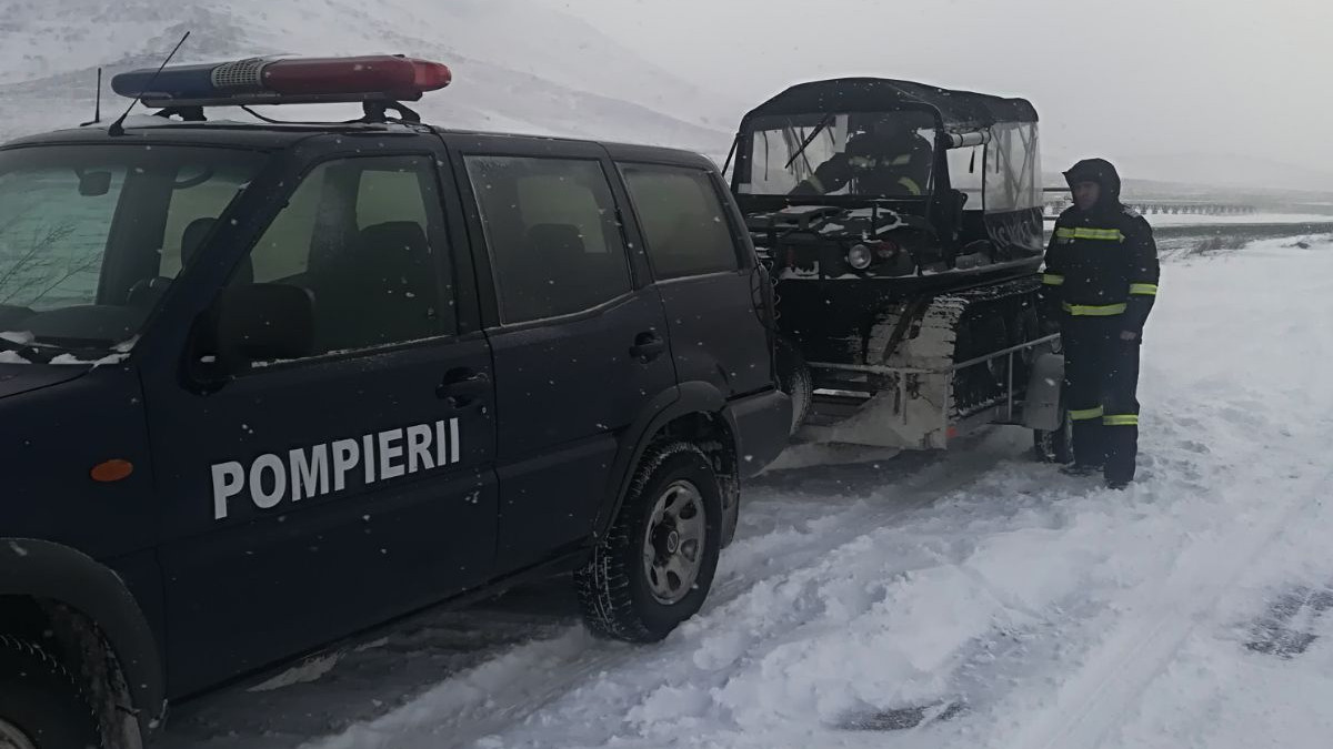 UPDATE Persoana de la Traian a fost preluată de SAJ, ambulanța a putut înainta, nu a intervenit șenilata, persoana fiind transportată la Spitalul orășenesc Măcin