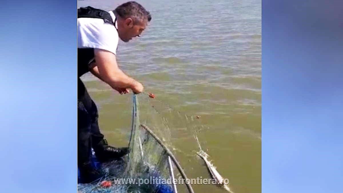 Sturion prins în plase multifilament, eliberat de polițiștii de frontieră tulceni. FOTO cu rol ilustrativ