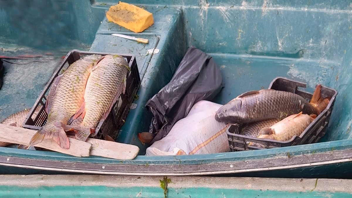 Sute de kilograme de pește și 1.500 de metri de plase, descoperite de polițiștii de frontieră tulceni. FOTO: Garda de Coastă