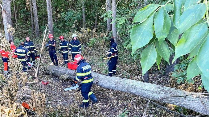 Salvatorii tulceni au fost solicitați să intervină joi, 12 august, într-o exploatație forestieră din apropierea localității Tudor Vladimirescu, unde o persoană fusese prinsă sub un copac care s-a prăbușit.
