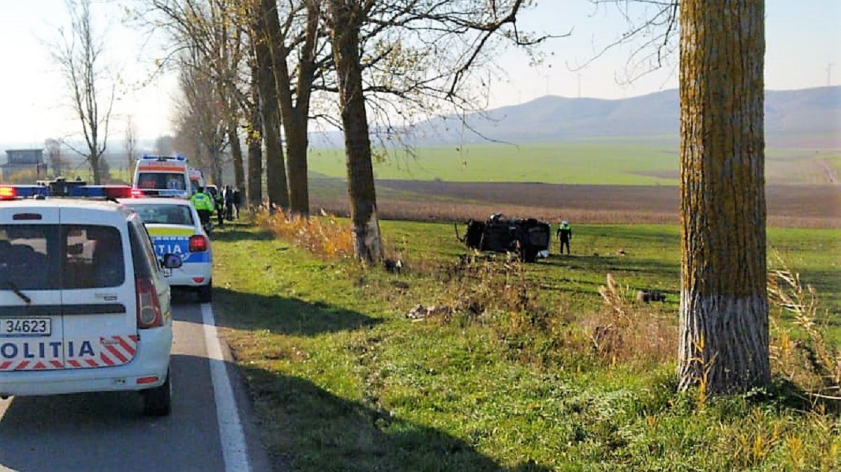 Accident rutier, soldat cu rănirea unui tânăr, pe DJ 222. FOTO IPJ Tulcea