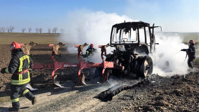 Tractorul a ars în proporție de 90 la sută. Cauza probabilă producerii incendiului este scurtcircuit electric.