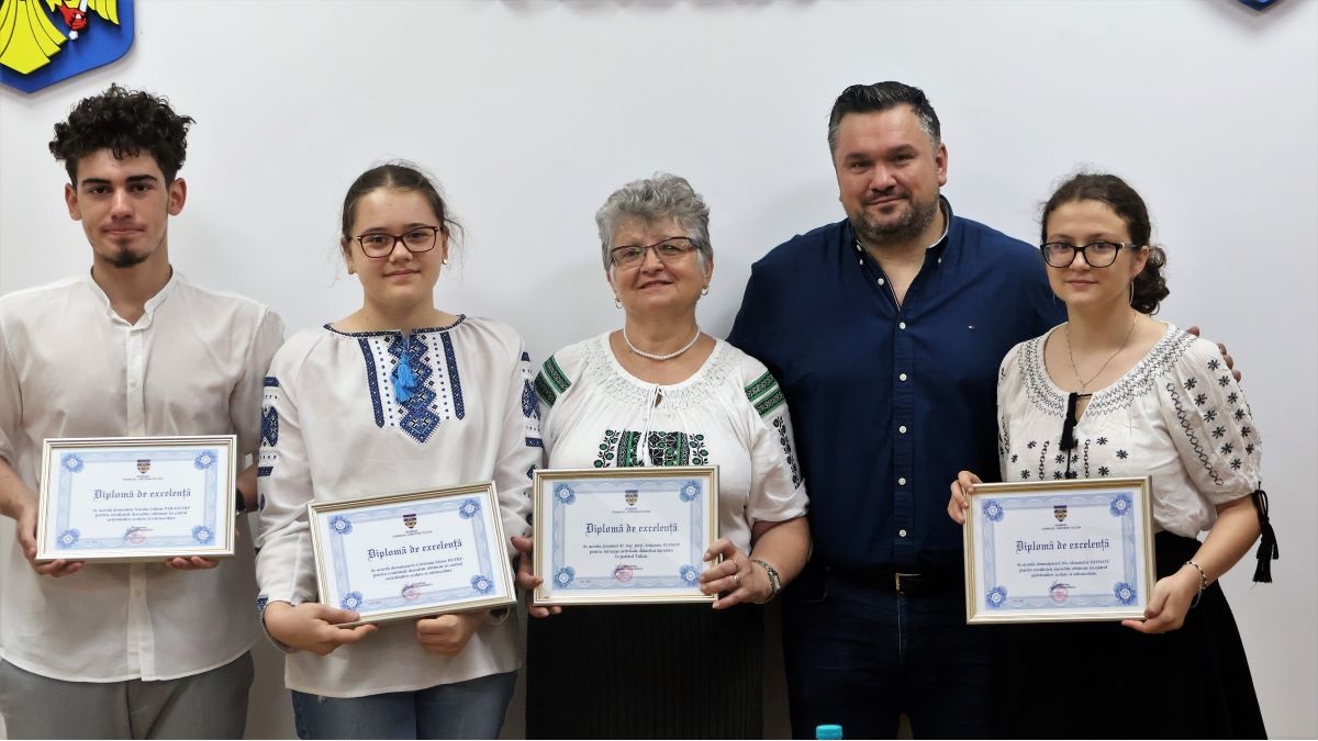 Trei elevi de la prestigiosul liceu „Grigore Moisil“, felicitați de conducerea Consiliului Județean Tulcea. FOTO: CJ Tulcea