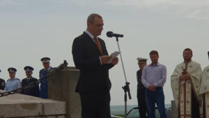 După prezentarea onorului şi intonarea imnului de stat, a urmat o slujbă religioasă oficiată de un sobor de preoţi precum şi alocuţiunile oficialităţilor prezente la eveniment.