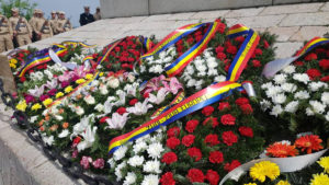 Manifestările s-au încheiat cu, intonarea imnului Uniunii Europene, iar la final s-au depus coroane şi jerbe de flori.