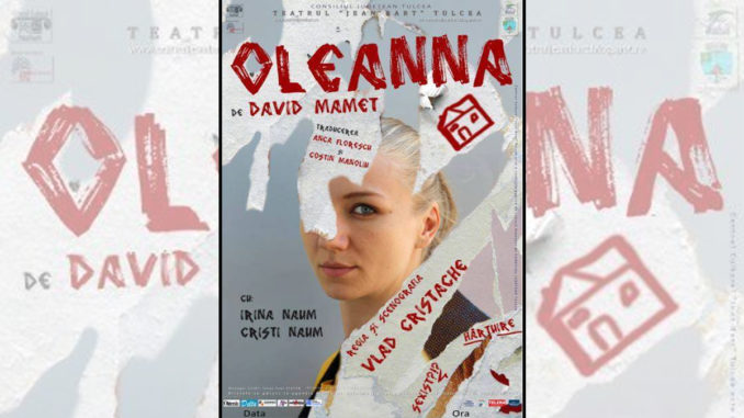 Oleanna” de David Mamet, este o piesă de teatru în două personaje ce ridică probleme importante în evoluția societății contemporane, precum corectitudinea politică și definirea deficitară a termenilor în comunicare. Personajele care participă la construcția conflictului dramatic al textului sunt Carol – interpretată de Irina Naum, o studentă și profesorul ei John – Cristi Naum.