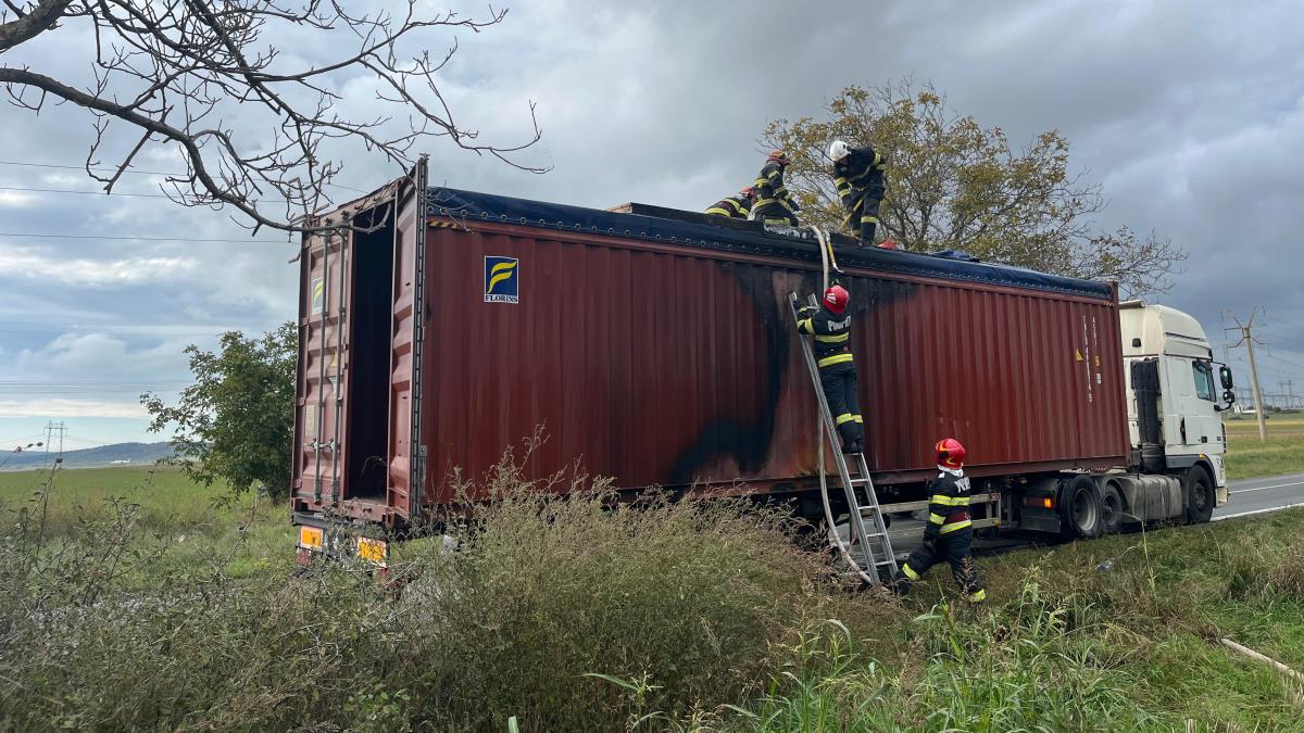Un autocamion a luat foc. FOTO ISU Tulcea