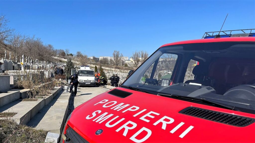 Un bărbat a murit prins sub o auto utilitară, în Cimitirul Nou din Tulcea. FOTO ISU Tulcea