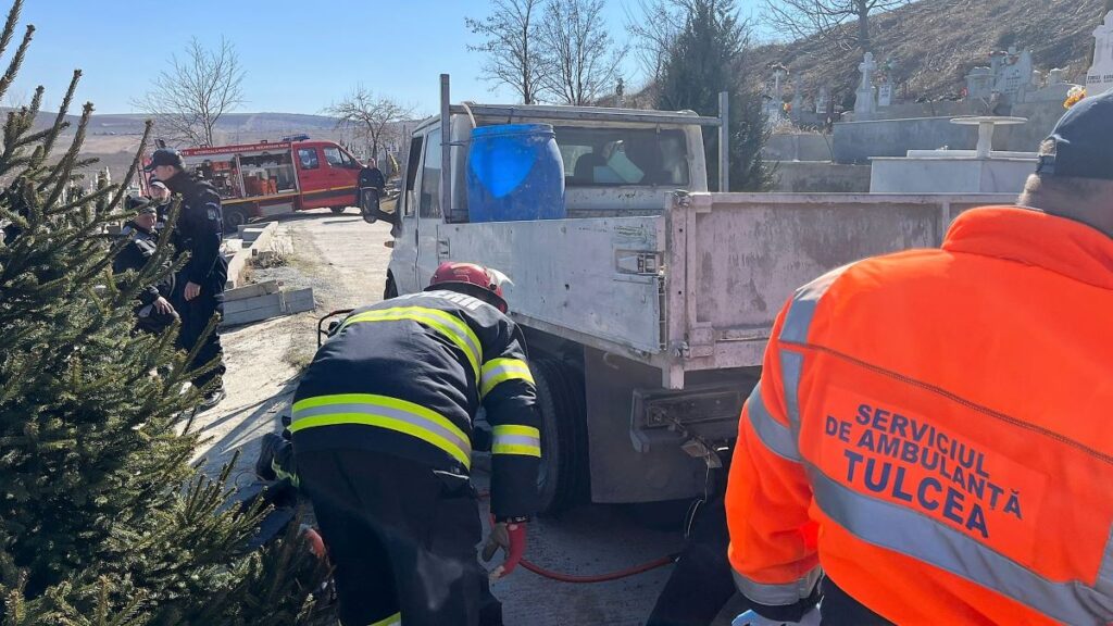 Salvatorii tulceni au fost solicitați să intervină miercuri, 23 martie, în Cimitirul Nou din municipiul Tulcea, după ce un bărbat în vârstă de 49 de ani a fost prins sub o autoutilitară.